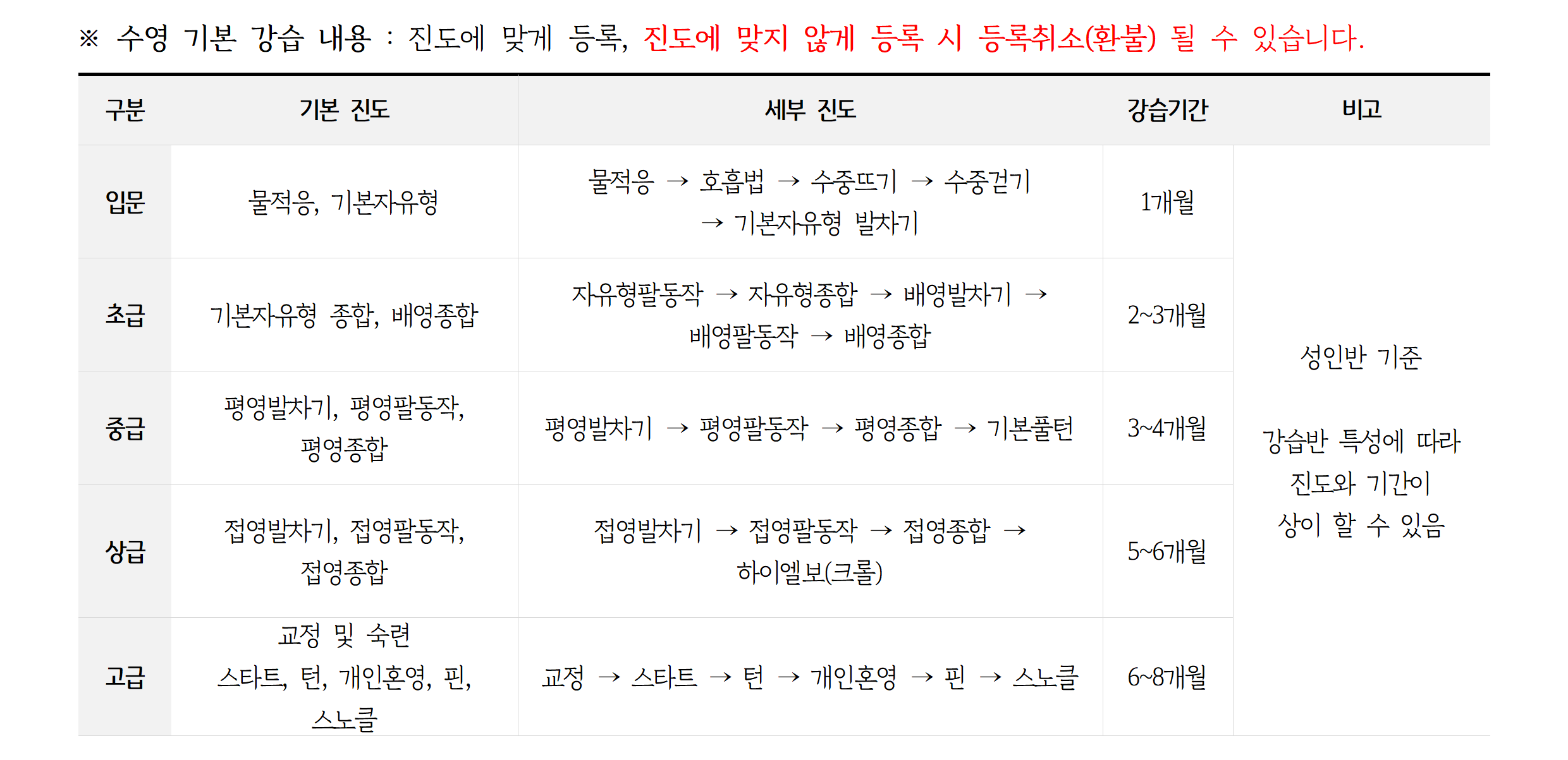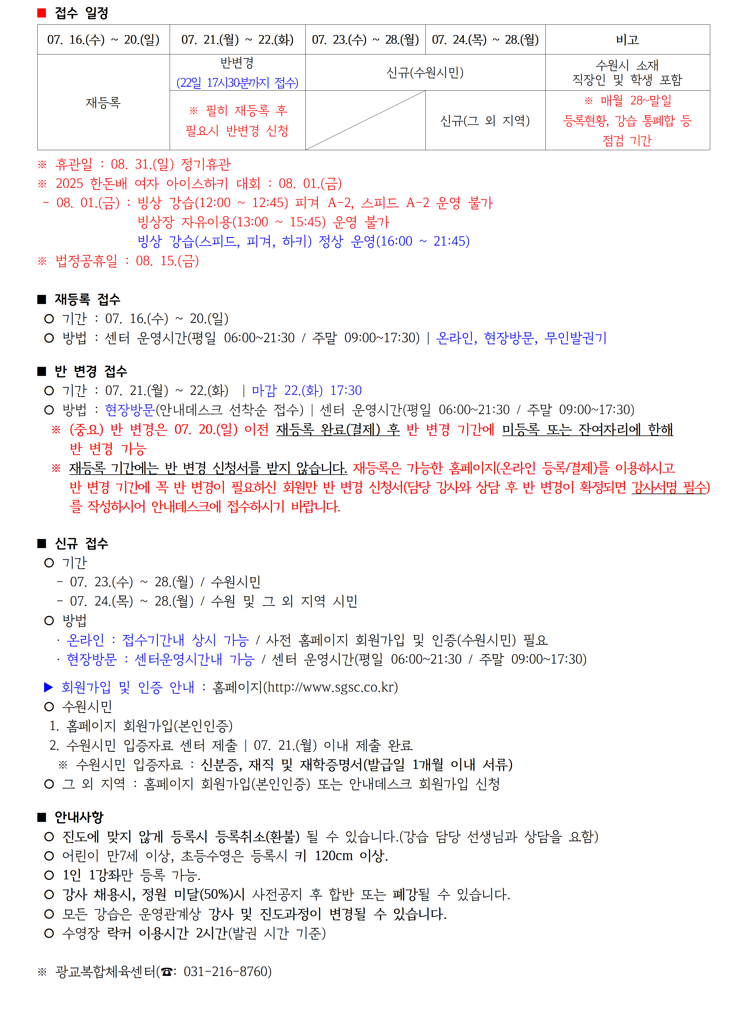 광교복합체육센터 2025년 8월 수영-빙상 진도표 공지(수정공지)