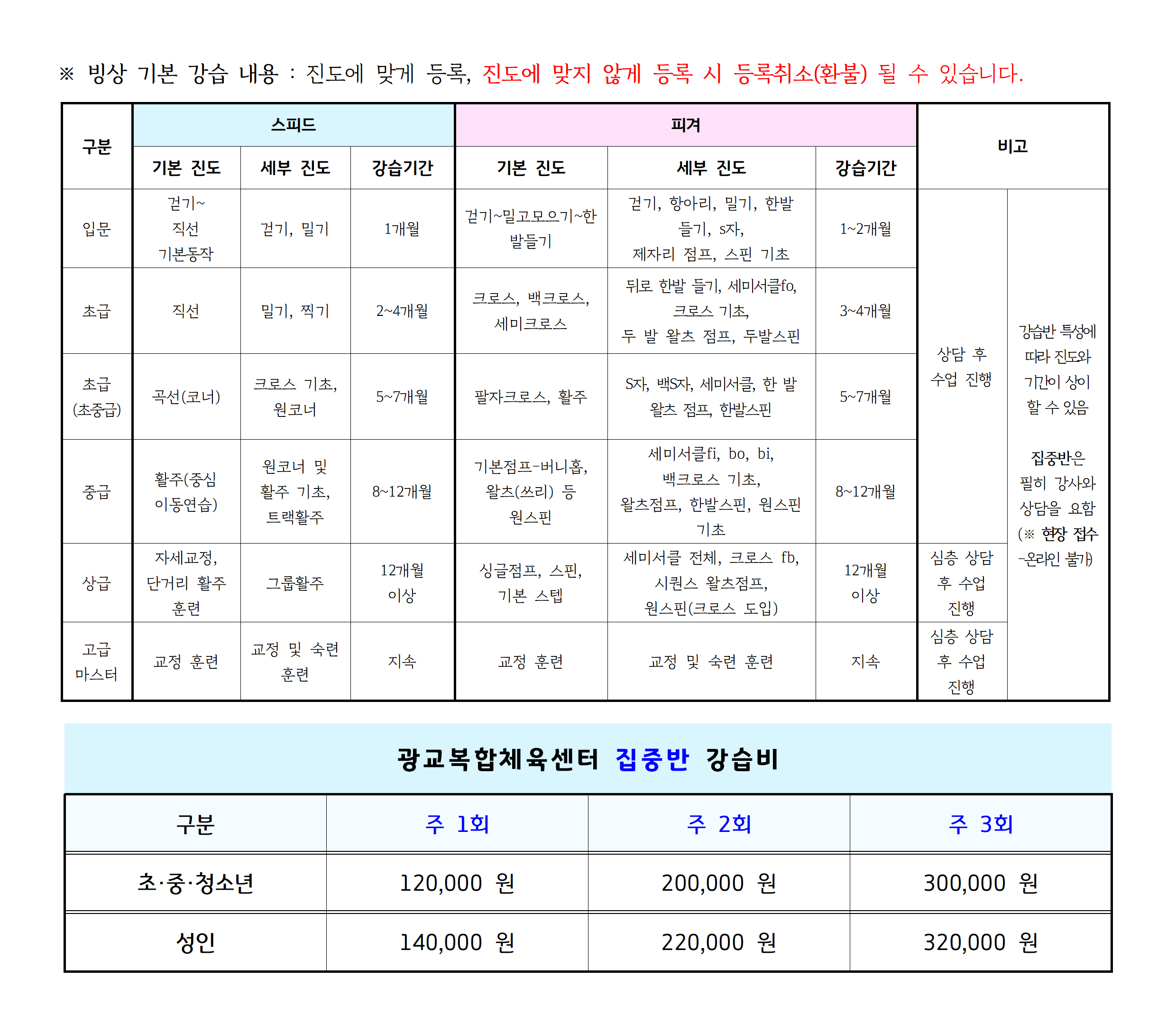 광교복합체육센터 11월 수영-빙상 진도표 공지