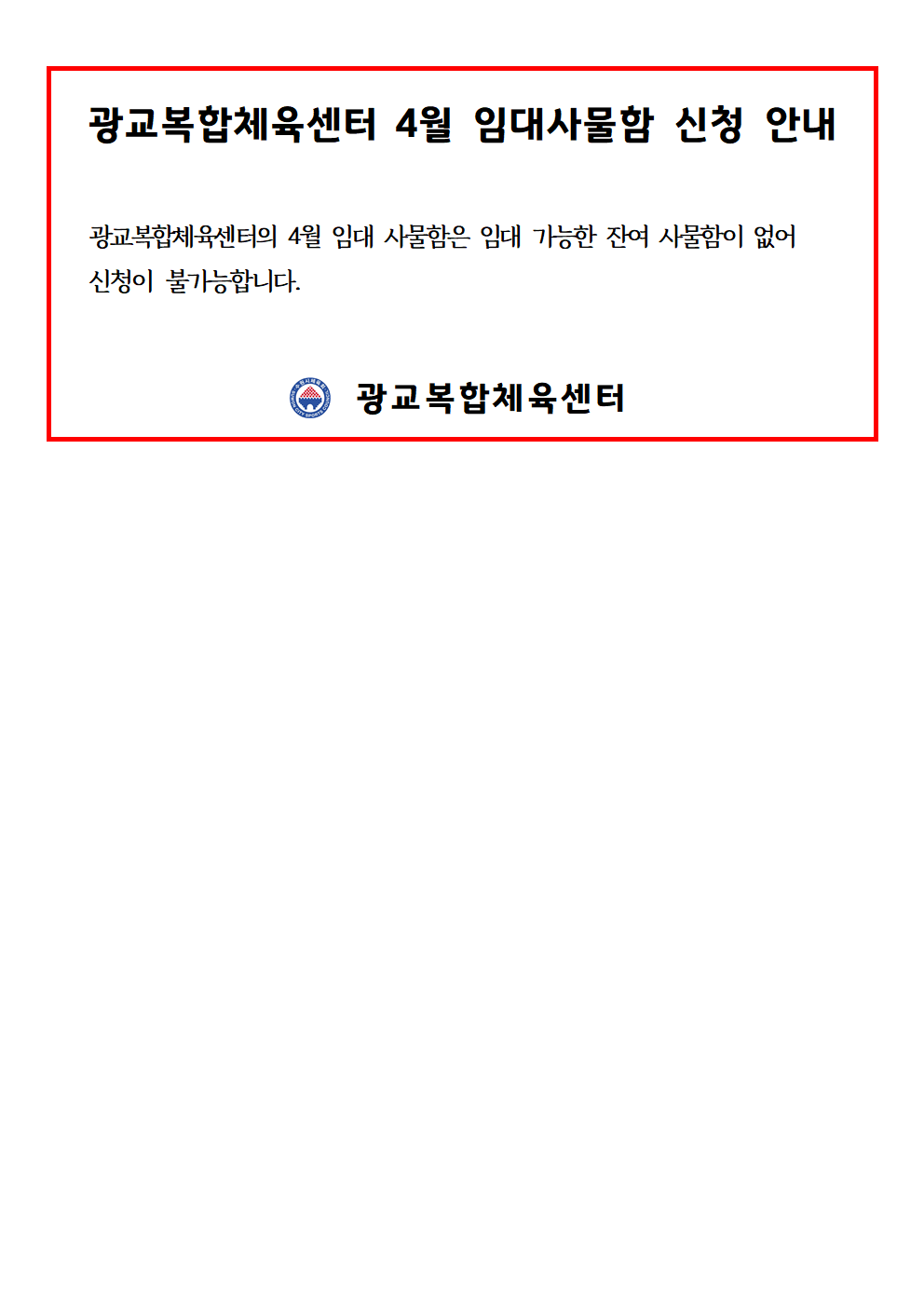광교복합체육센터 2025년 4월 임대사물함 신청 안내 작성자 관리자 등록일자 2025년 3월 27일 10시 6분 5초 조회 676 2025 04월 임대사물함 신청 안내001.png [ Size : 38.17KB , Down : 583 ] 미리보기 다운로드 목록보기