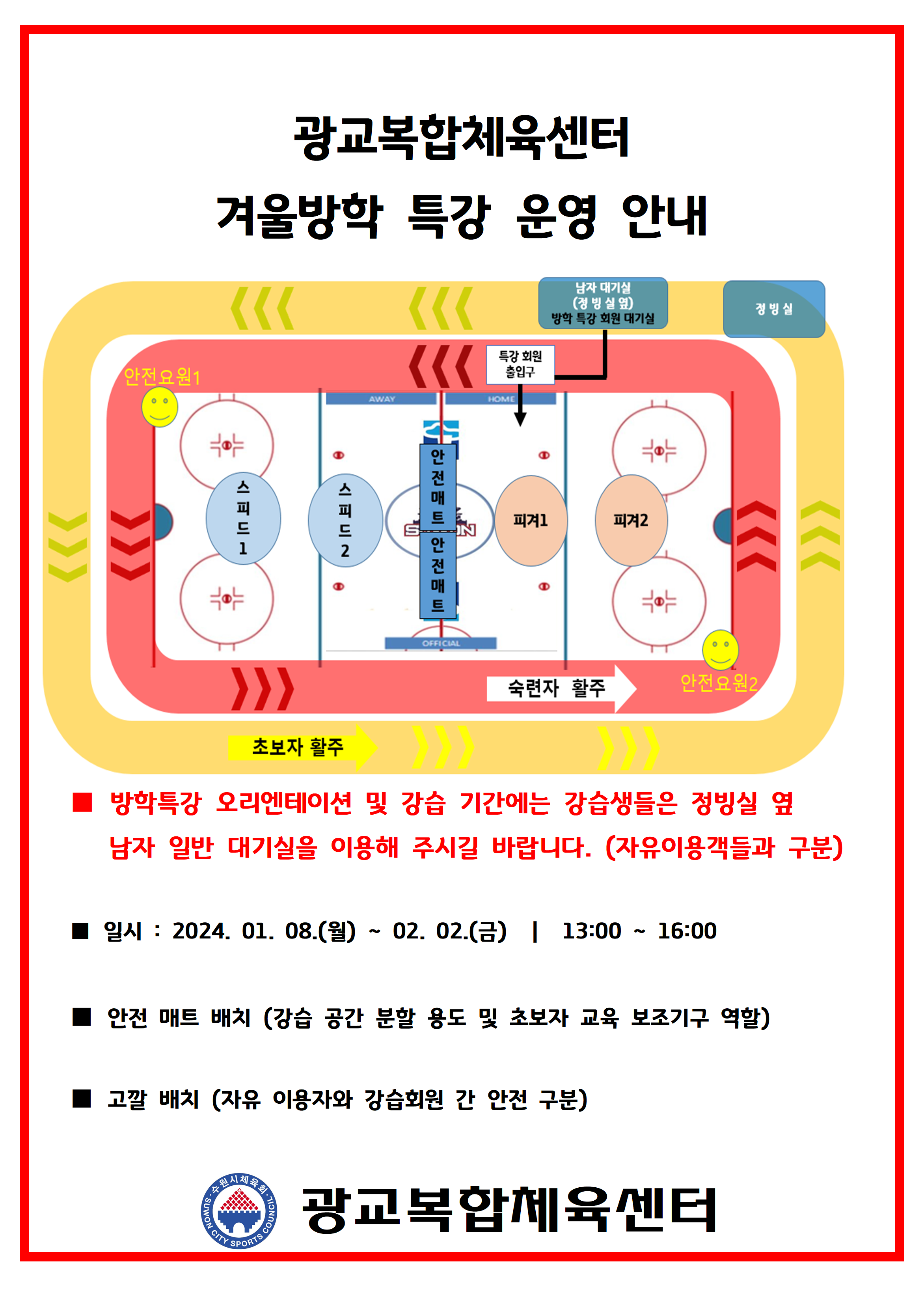 광교복합체육센터 겨울방학 특강 운영 안내 작성자 관리자 등록일자 2023년 12월 29일 17시 13분 7초 조회 2,554 겨울방학 특강 운영 안내001.png [ Size : 1004.44KB , Down : 3,055 ] 미리보기 다운로드 목록보기