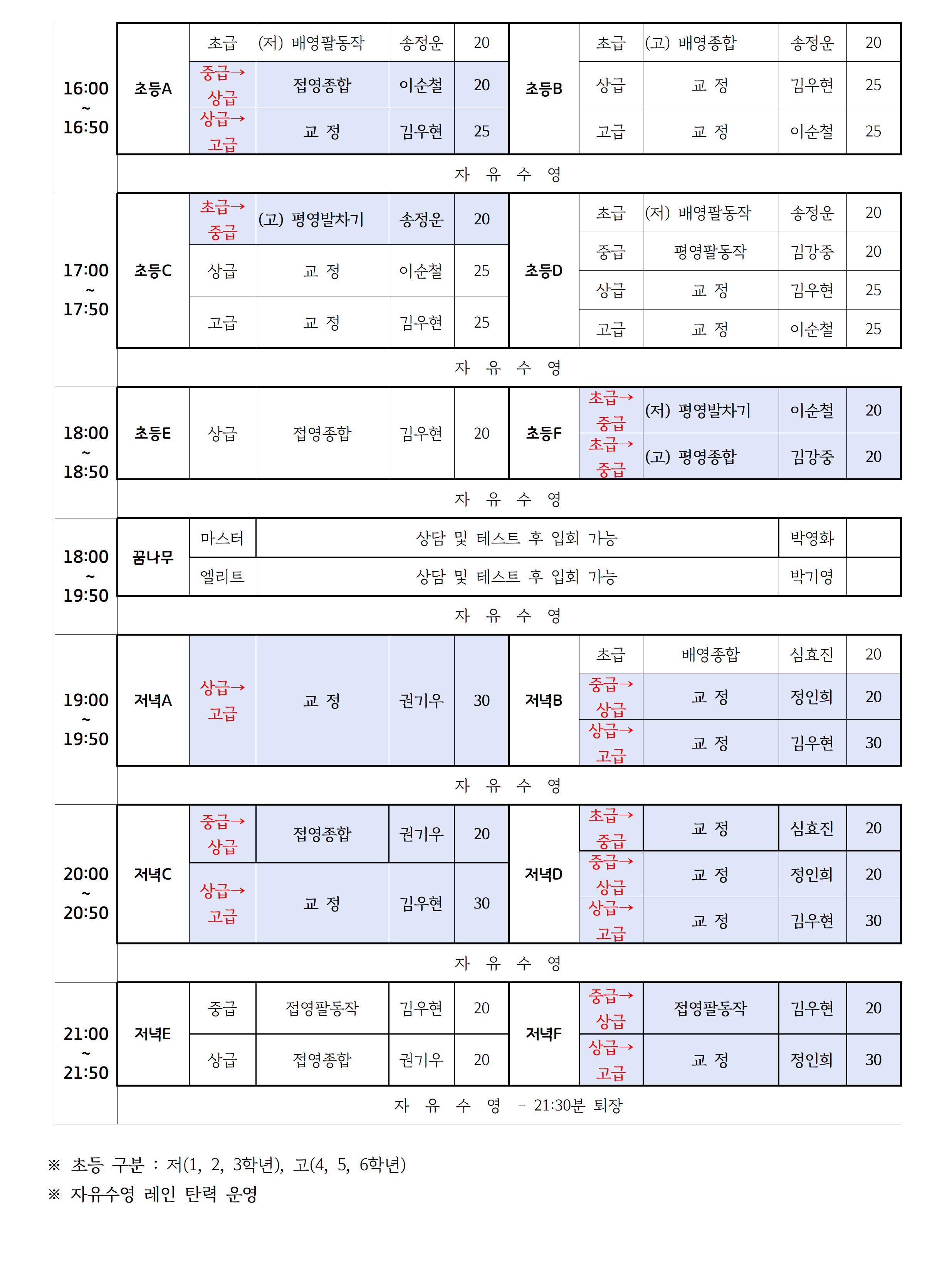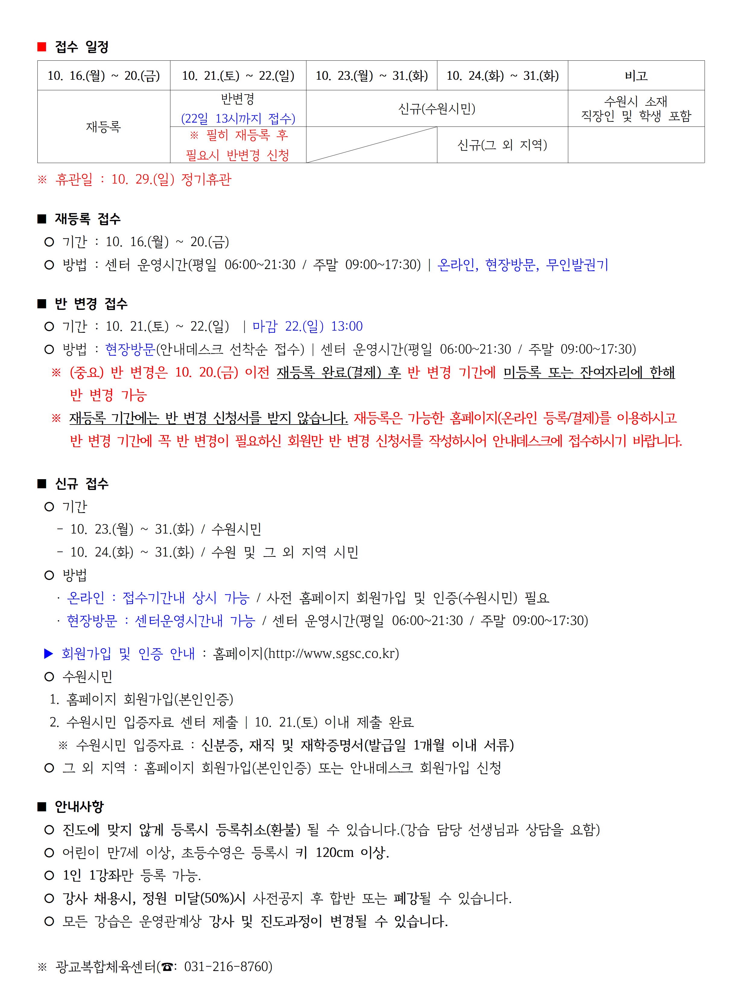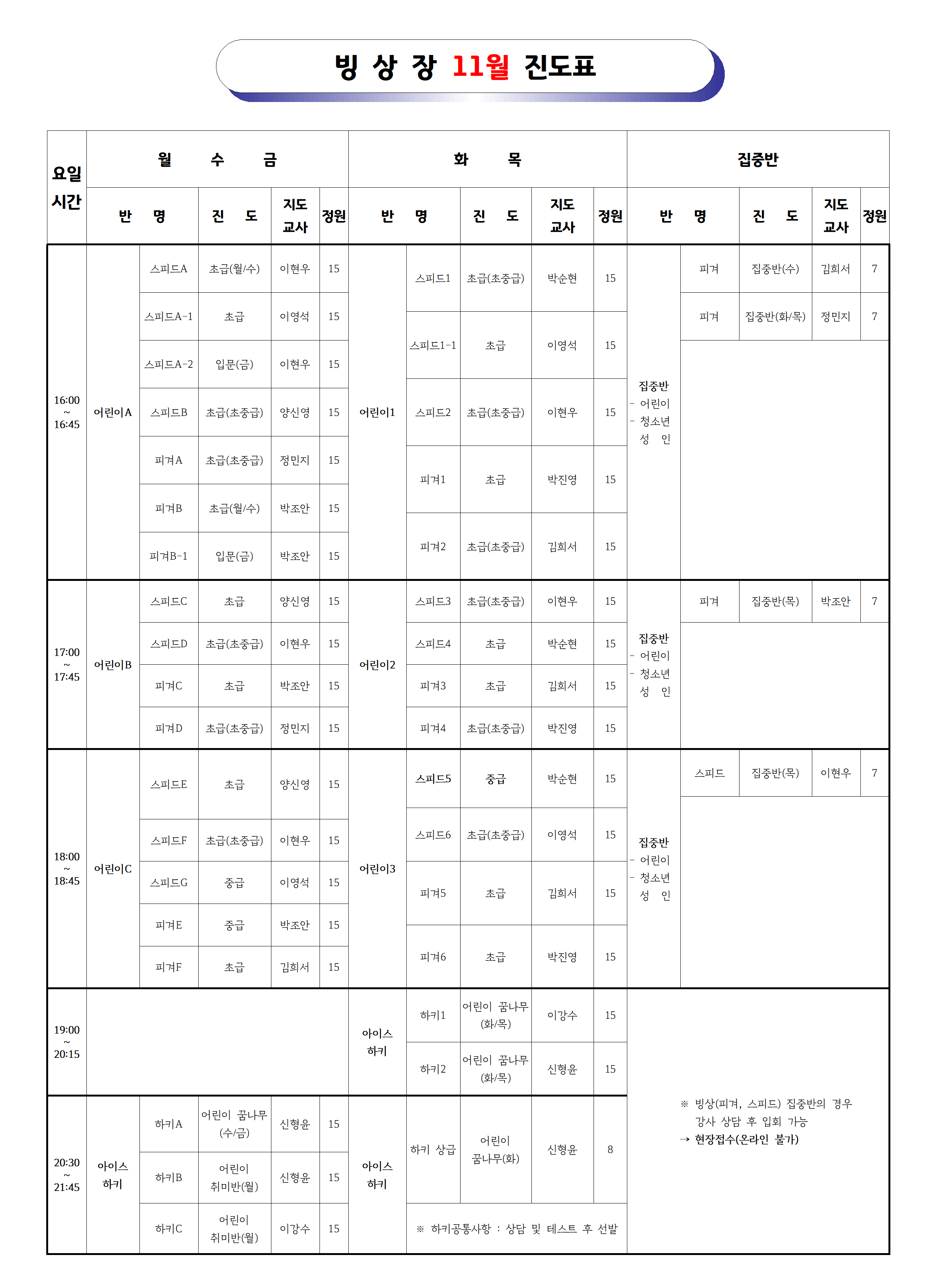 광교복합체육센터 11월 수영-빙상 진도표 공지