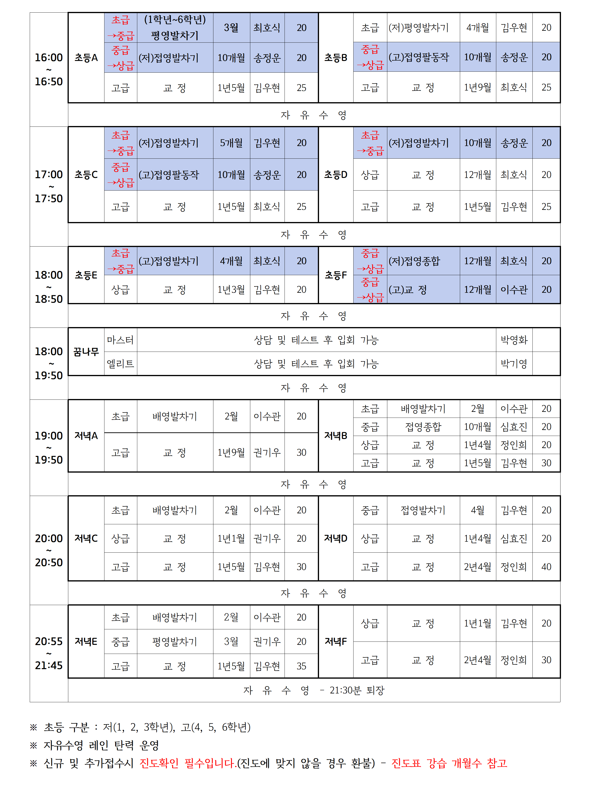2024년06월 _강습 진도표(공지용)001.png [ Size : 332.61KB , Down : 5,610 ] 미리보기 다운로드